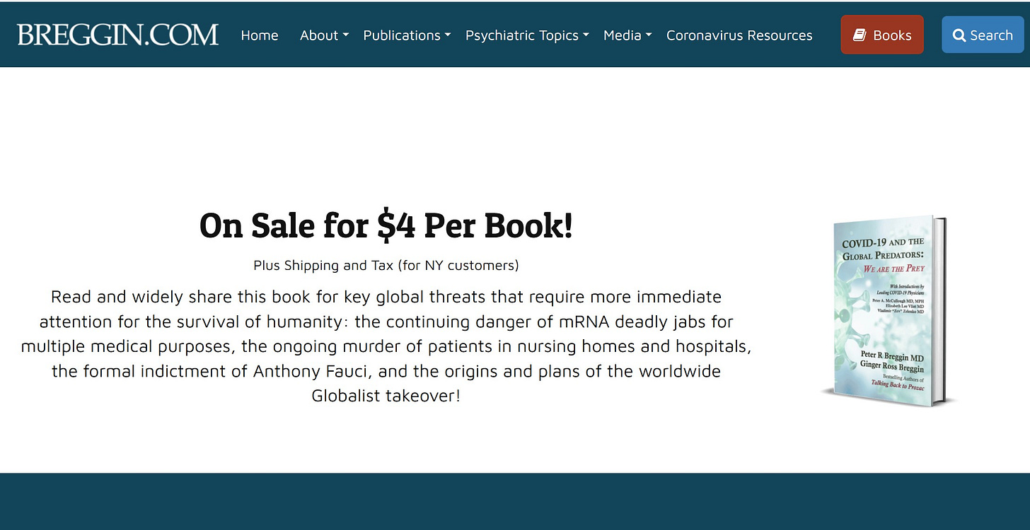 Find us on Substack at: Breggin Alerts! Exposing Global Predators